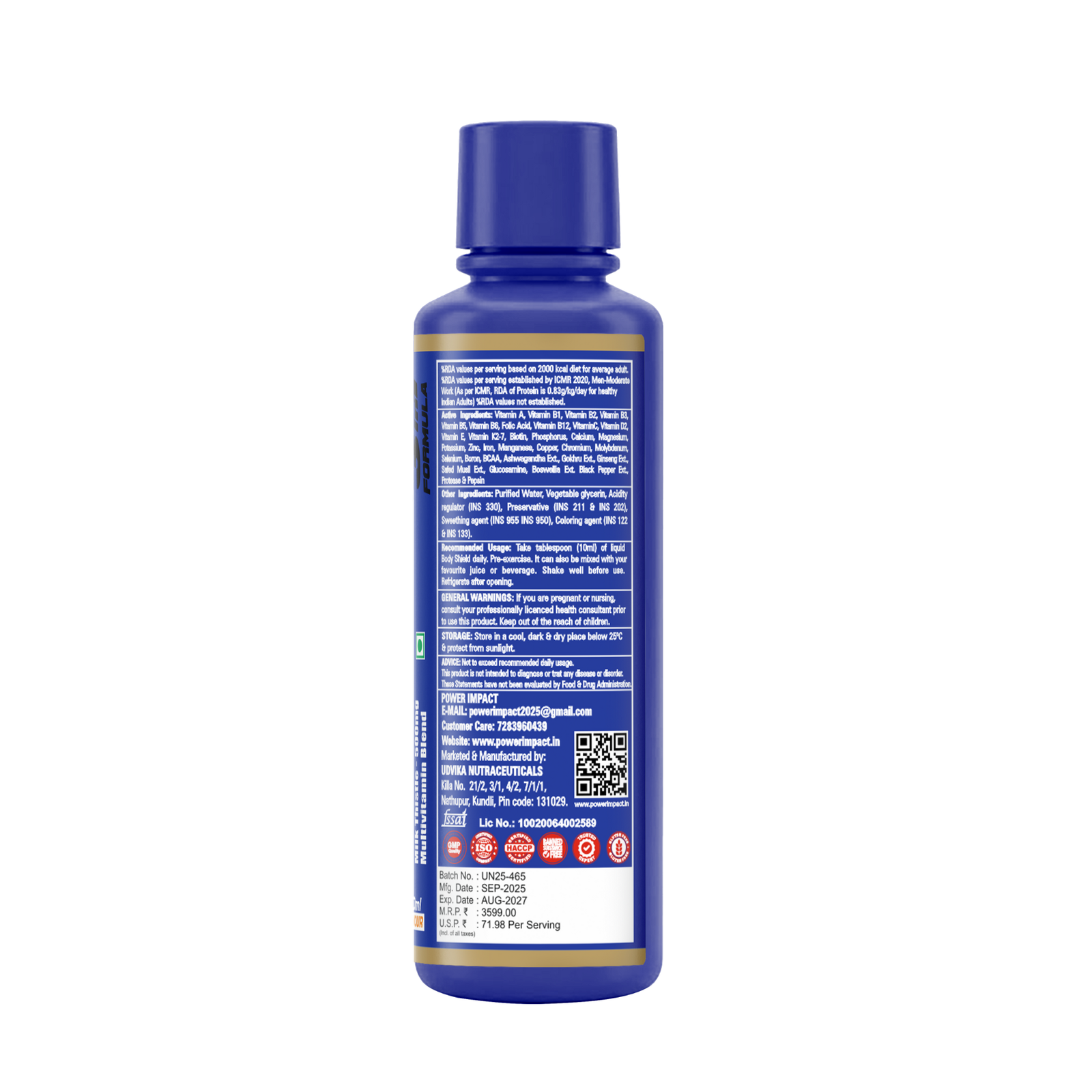 Power Impact BODY SHIELD is a powerful 3-in-1 daily wellness formula designed to support immunity, muscle stamina, and the overall health of internal organs. This advanced liquid blend combines essential vitamins, herbal ingredients, and antioxidant-rich compounds to keep your body protected, energized, and functioning at its best.