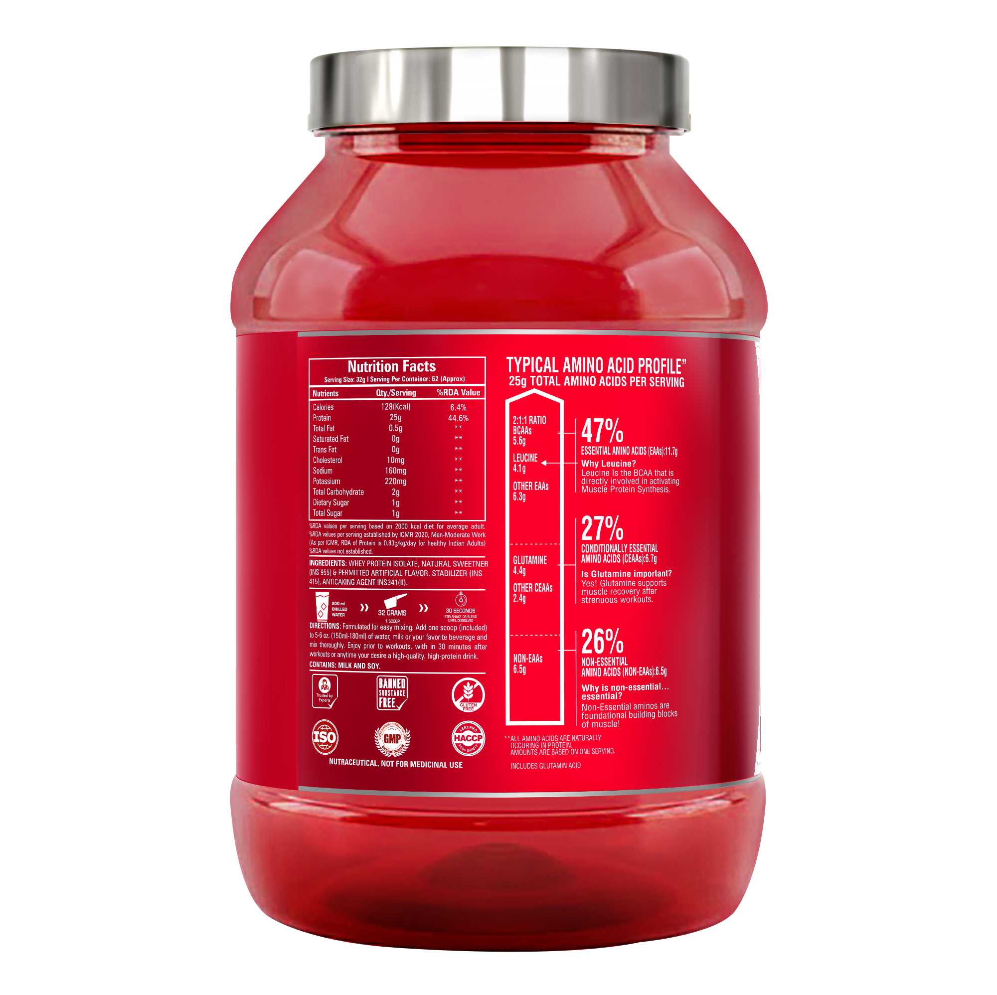 25g Pure Whey Protein Isolate per serving – ultra-fast absorption for lean muscle development